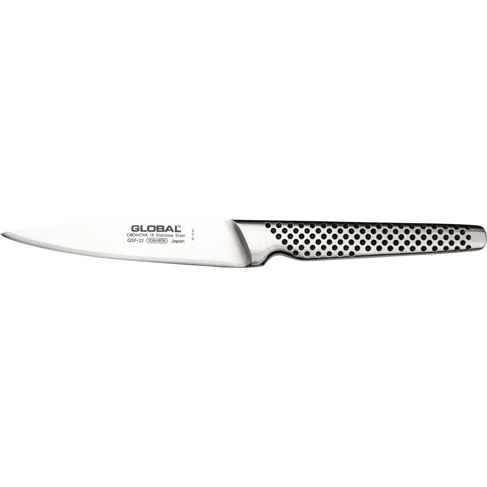 The GSF-15 is the most popular petty knife in the Global range and is very often found in set combinations. Its little 8cm blade is good for all those small kitchen tasks, peeling, cutting fruit and small delicate kitchen work. This knife can cover all the tasks of the other GSF range and is a classic all-rounder.