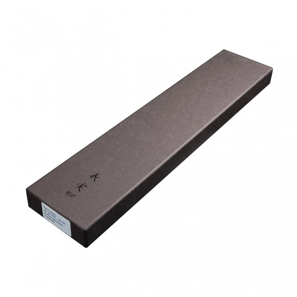 Yoshimi Kato is the son of Hiroshi Kato a famous knife maker who made his name at Masakage Knives, a legend in the knife making world. Training under his father Yoshimi Kato has become one of the newest and hottest knife makers on the block. He himself has started to make his own knives at the Takefu Knife village under his own name whilst still doing some work at Masakage Knives. The AS Kurouchi Damascus range has a core of Aogami Super Blue Carbon steel giving it a Rockwell rating of 63/64 HRC. The Aogami Super Blue core is one of the best for edge retention and superior sharpness. Beautifully finished in the Kurouchi style (left to blacken in the forge) giving the super blue steel core added protection due to the reactive nature of the steel. Not only does it protect and ensure that it is easy to care for but adds a distinguished forged finish look adding to the beautiful aesthetic.